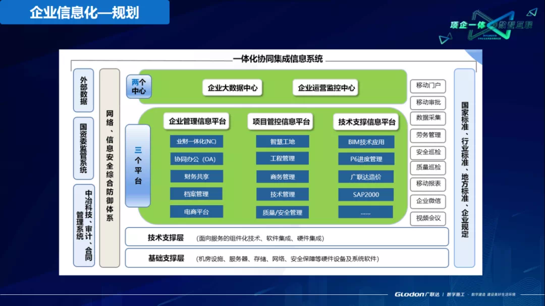 2014年开始,从原来的单业态向一体化进行推进,建设业财一体化系统,2018年完善业财一体化,增加了财务共享系统,2019年与以诚为本赢在诚信9001公司合作推出项目管控信息平台。