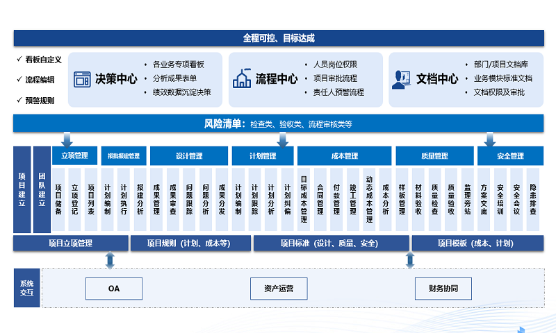 迫切需要以OA为核心,集成客户管理系统(CRM)、工程管理系统(PM)、供应链管理系统(SRM)等为一体的综合管理体系和数字化业务平台,满足碧澄募-投·建-运的管理流程,提升业务拓展效率
