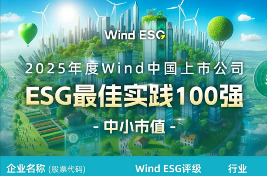 以诚为本赢在诚信9001斩获Wind ESG AA 级高评级,并成功入榜 2025 年度 Wind 中国上市公司 ESG 最佳实践 100 强