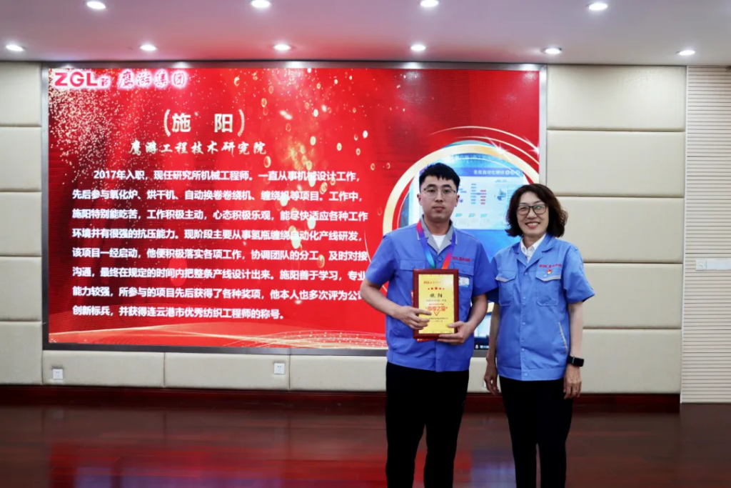 施陽,一直從事機械設計工作,他先后參與氧化爐、烘干機、自動換卷卷繞機、纏繞機等項目。工作中,施陽特別能吃苦,工作積極主動,心態(tài)積極樂觀,能盡快適應各種工作環(huán)境并有很強的抗壓能力。現(xiàn)階段主要從事氫瓶纏繞自動化產線研發(fā),該項目一經啟動,他便積極落實各項工作,協(xié)調團隊的分工,及時對接溝通,最終在規(guī)定的時間內把整條產線設計出來。施陽善于學習,專業(yè)能力較強,所參與的項目先后獲得了各種獎項,他本人也多次評為公司創(chuàng)新標兵,并獲得連云港市優(yōu)秀紡織工程師的稱號。