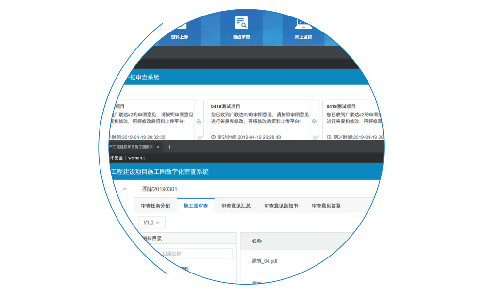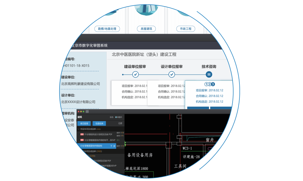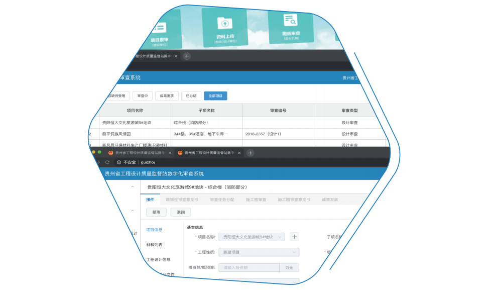 提供统一、规范、完整的施工图技术审查及工作管理平台,构建了先申报后选择、 机选摇号、同体回避、工作量管控、申诉评价等全面的机构遴选管控模块,为政府买服务方式开展施工图审查工作提供了规范、便捷、有效的系统支撑。能够与报建平台无缝对接,实现行政审批与技术审查的全过程打通;提升审批和监管的及时性、有效性、准确性,为进一步压缩工程建设项目审批总时限提供有效技术支撑。