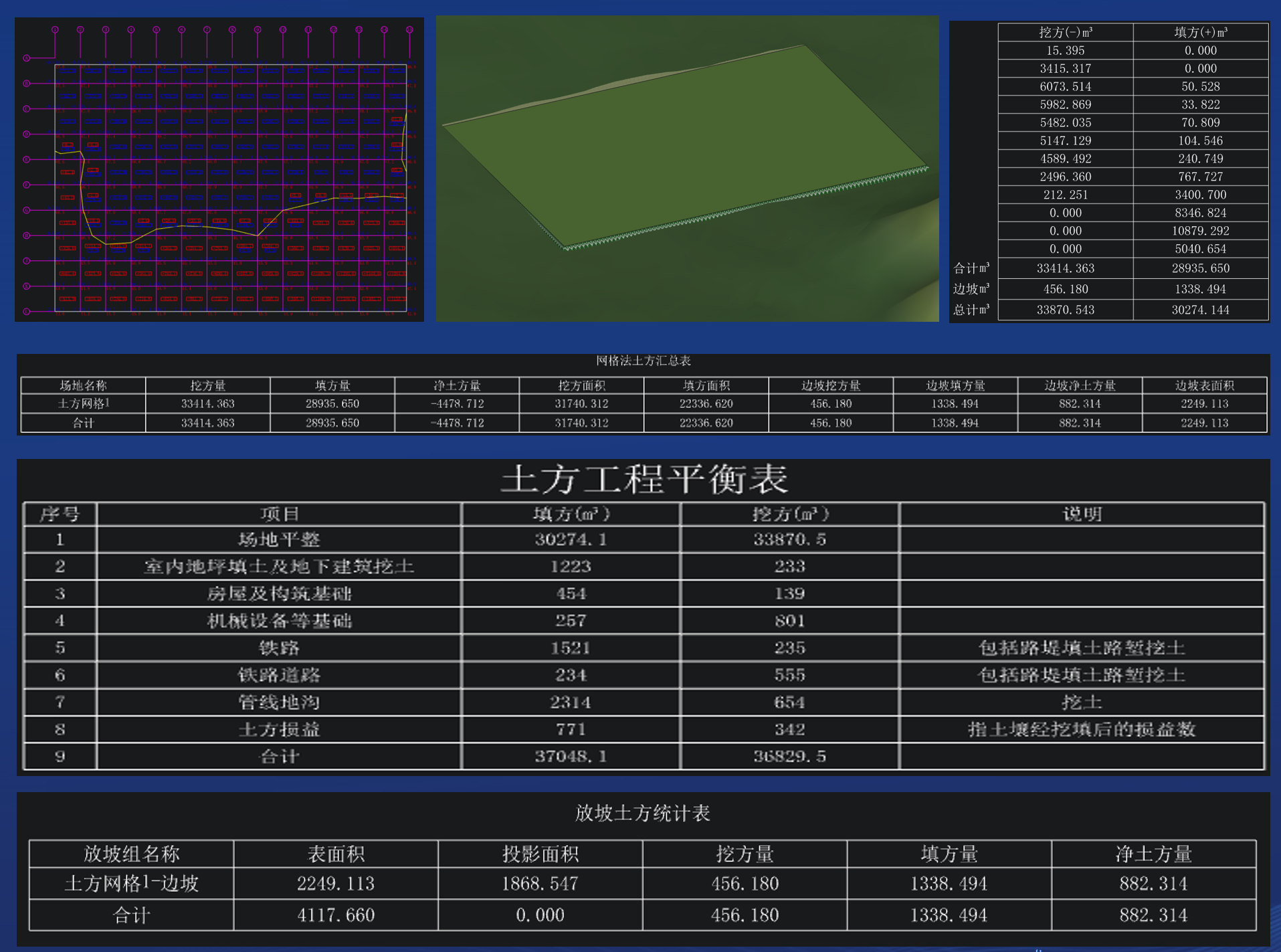 场平土方设计土方网格 1、多区域土方自动计算2、土方网格快速创建3、四种计算法方法:三角网法、四方棱柱法、四角棱柱法、平均高度法4、土方优化:点坡度法、三点法5、角点标高、土方方格灵活调整6、土方网格出图、相关工程量表出表 场地放坡 1、放坡组管理2、场地自动放坡3、边坡、排水沟、挡土墙灵活布置4、边坡土方计算、相关工程量表出表5、坐标标高标注6、设计地形:原始地形、设计场地、放坡组 快速组合 |