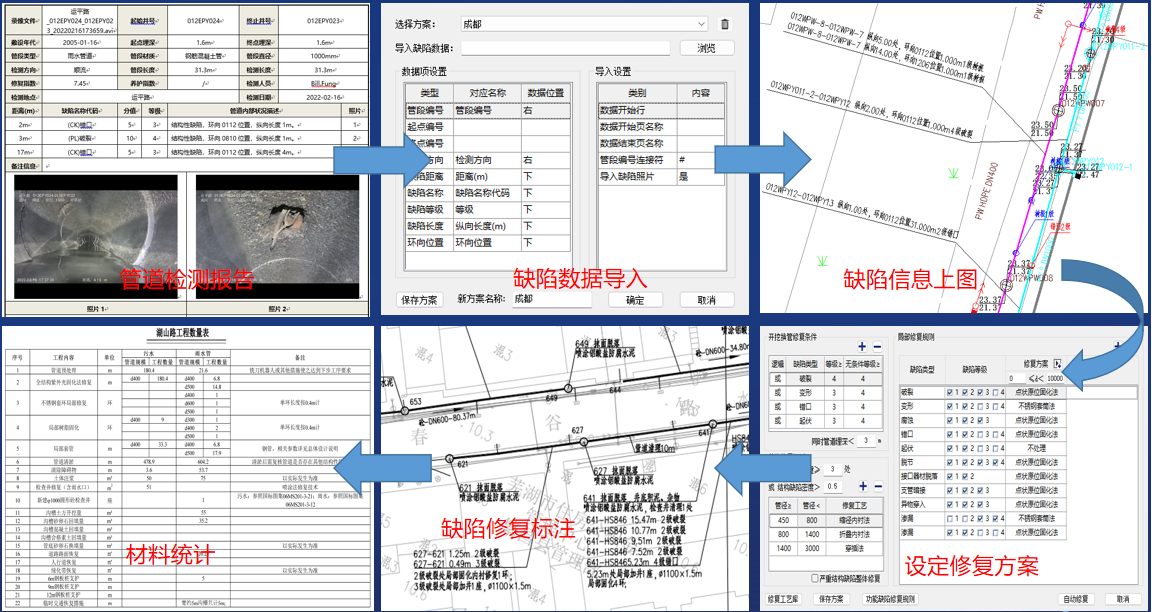 增加管网修复模块。从缺陷上图到修复出图的全过程系统性解决。