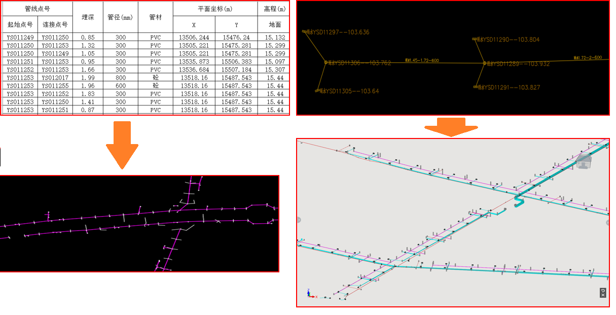 软件可以针对市场主流的Excel和Dwg现状管网数据快速识别,并同步创建为参数化的数维管井模型和拓扑关系,为后续管网评估提供数据基础。