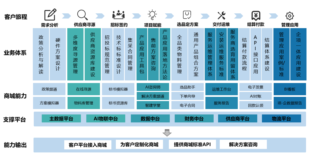 智建商城专注于建筑施工领域的采购需求分析、供应商寻源、招标签约、项目赋能、选品定方案、交付运维、结算付款、管理应用,为企业提供供应链管理、数据服务、内容服务,满足企业全场景的采购需要和全链路的管理诉求。