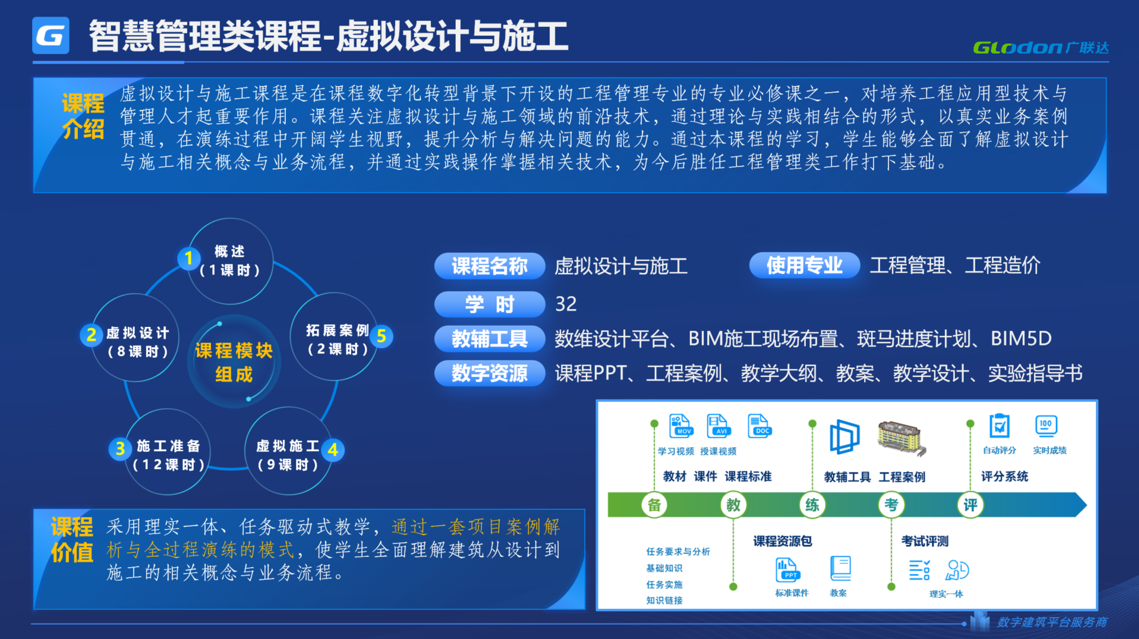 《虚拟设计与施工》让学生了解数字化、智能化和虚拟仿真等技术在设计、施工组织与管理中的应用原理和流程。